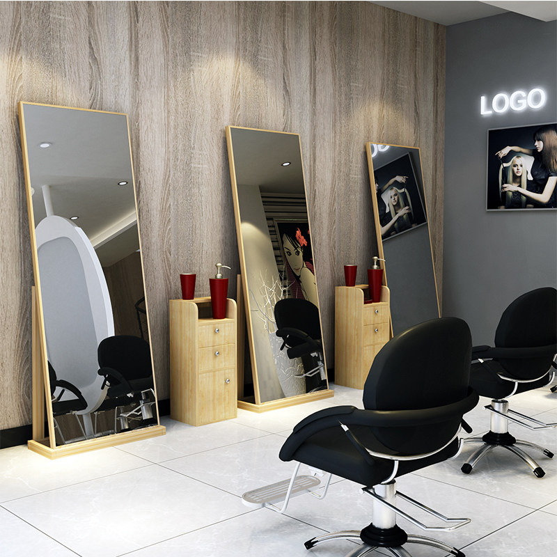 Internet celebrity solid wood barbershop mirror hairdressing shop mirror table make-up single-sided mirror hair salon hot dye floor mirror fitting mirror