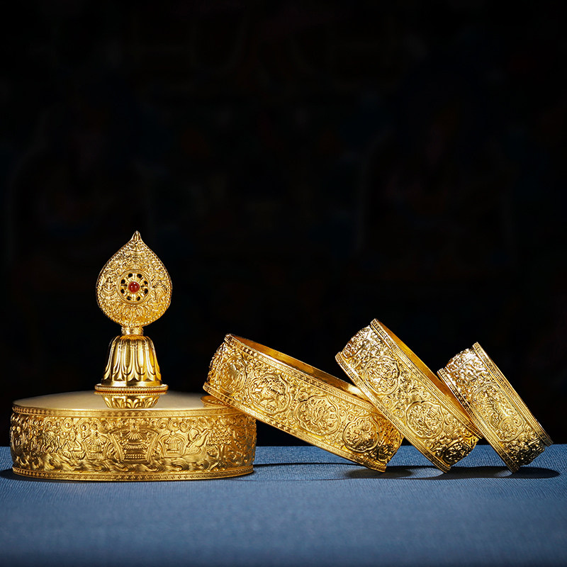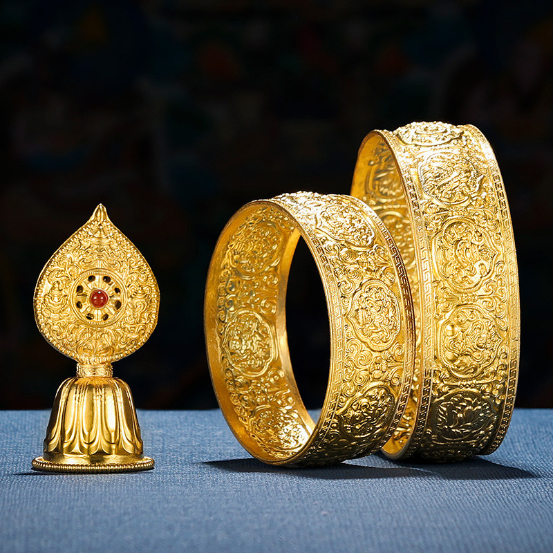 Tibetan 999 sterling silver Manza plate electroplated 24k gold Manza eight auspicious gold-plated manza 37 heaps of gold-plated Manza