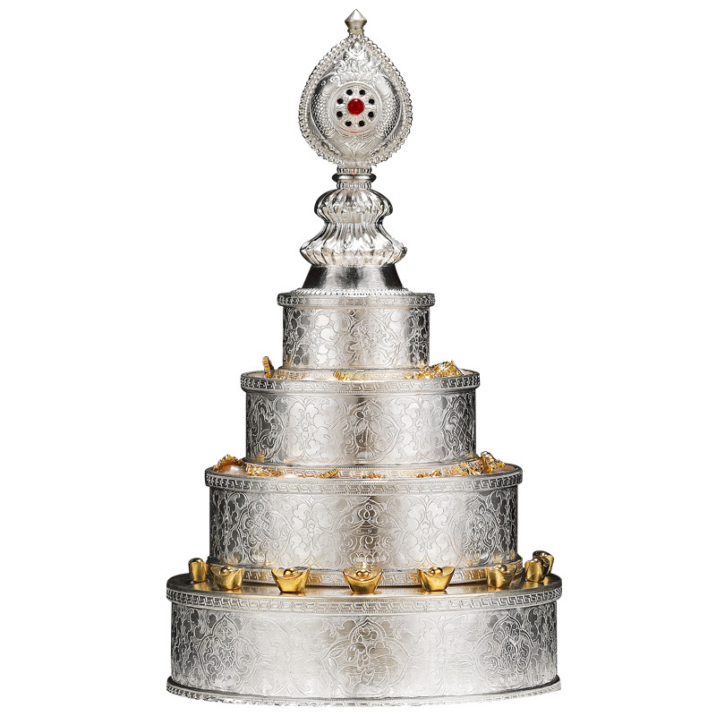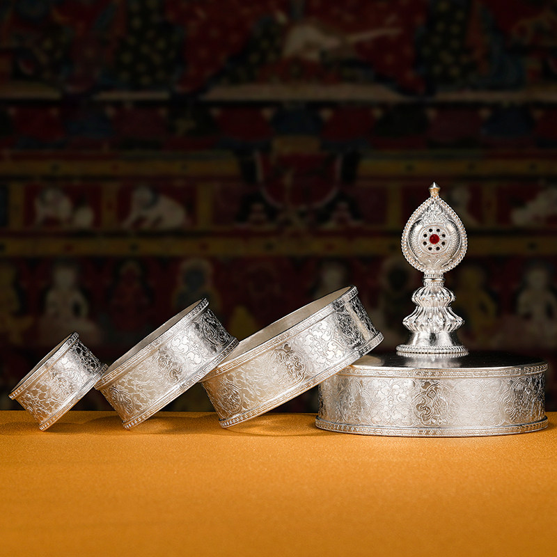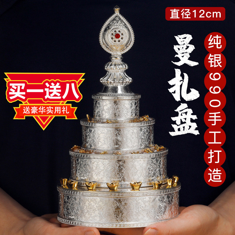 Tibetan Tantra Sterling silver Manza plate handmade fine flat flower eight Auspicious Man tea Romanda 12cm