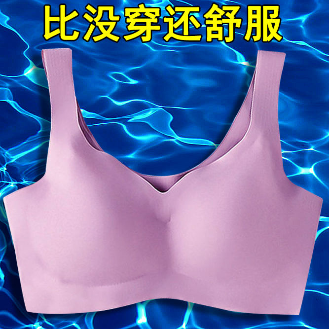 Seamless underwear women's thin section push-up bra ice silk sleep no steel ring shockproof running vest large size sports bra