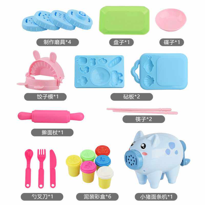 Cake Machine Ice Cream Machine Universal Containing Box 6 Colorful Mud (Bagged) 5 Cans Color Clay (Canned) Blue A Small Pig Noodle Bar Machine Pink A Small Pig Noodle Bar Machine B Small Pig Noodle Bar Machine