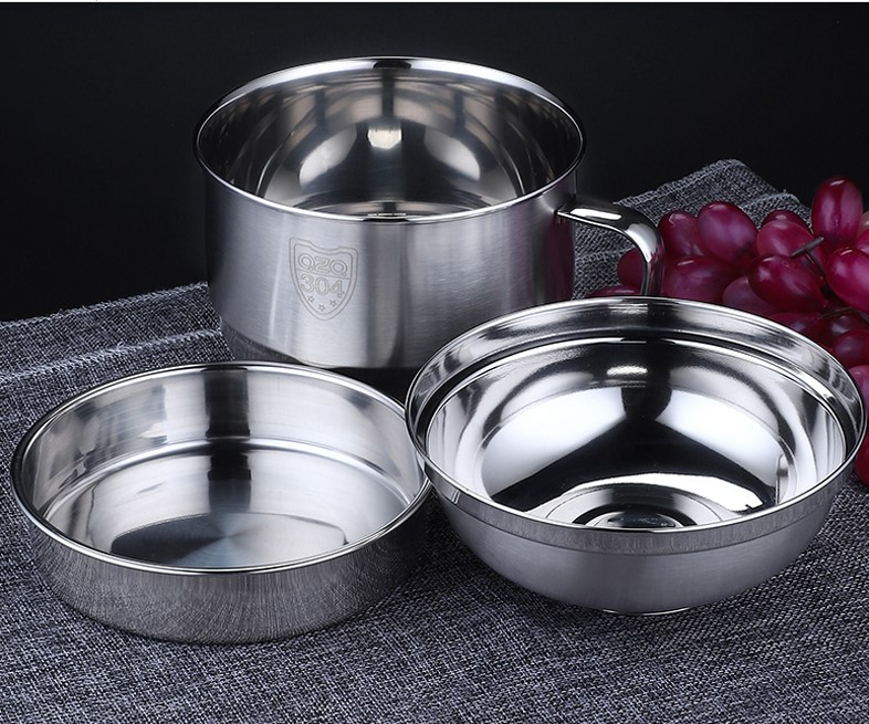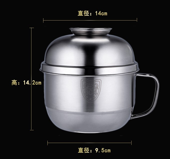 304 stainless steel lunch box, thickened adult rice bowl, student dormitory, double noodle bowl with cover