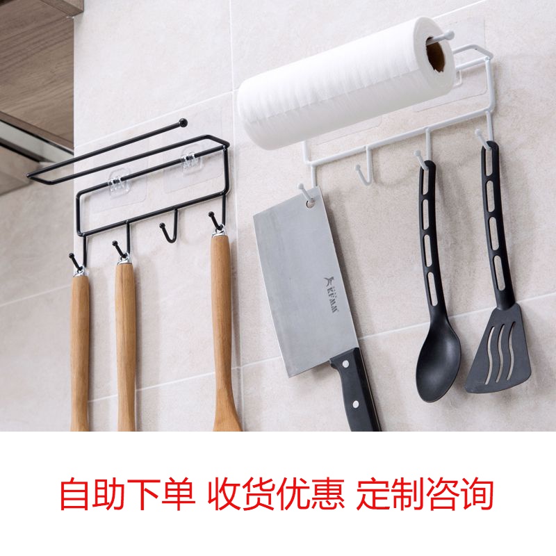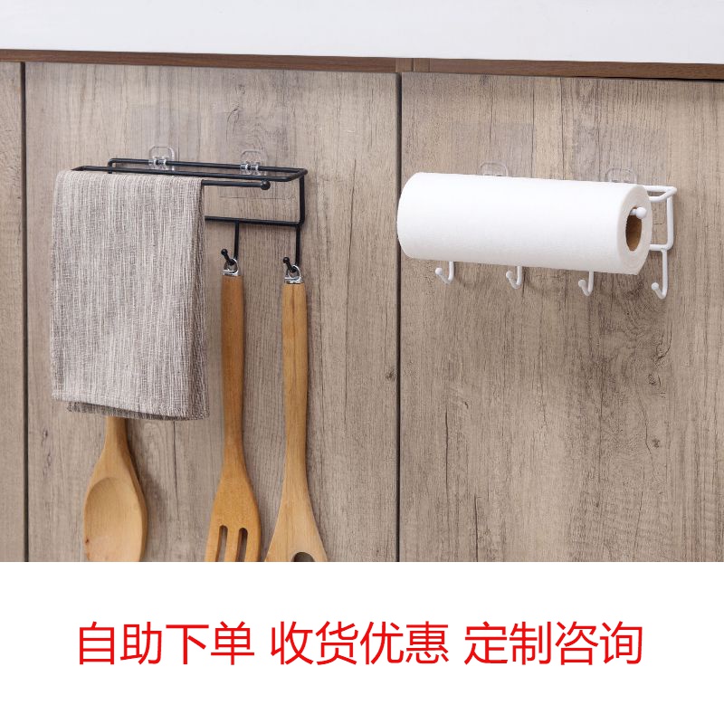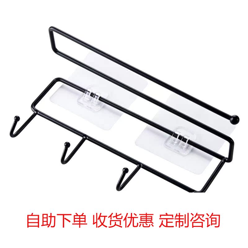Overall cabinet wrought iron sticker rack kitchen paper towel rack affordable and durable 4 hooks cabinet finishing rack storage rack