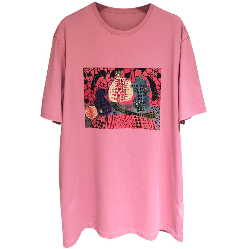 Counter brother's new women's clothing 2022 summer all-match pink loose printing diamond-studded short-sleeved T-shirt women