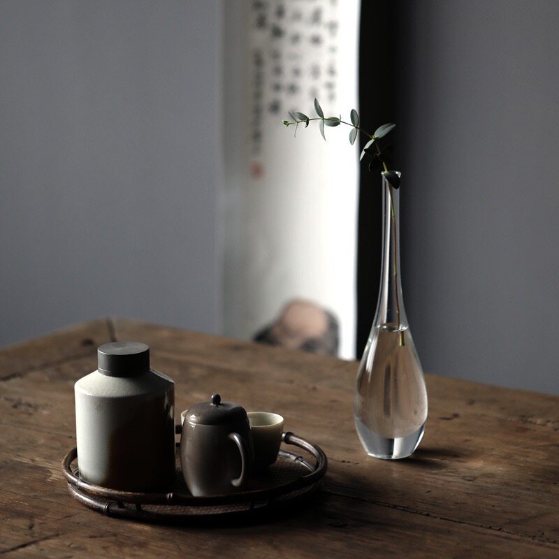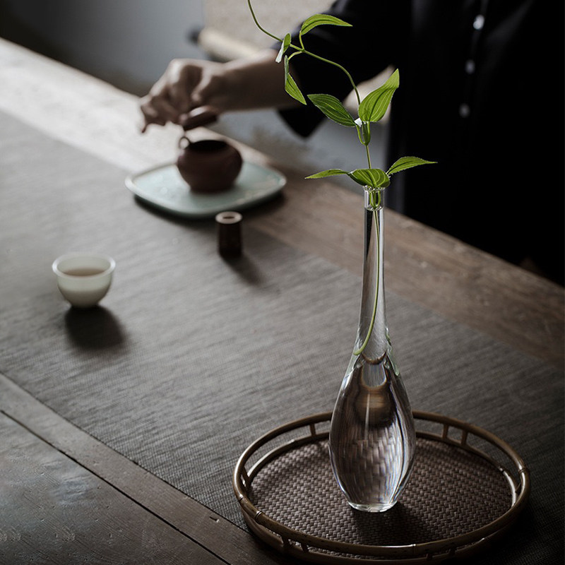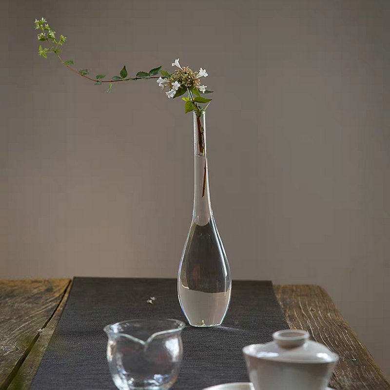 Naturalist manual retro Chinese Zen simple glass vase flower arrangement transparent kwan-yin bottle desktop home flower ware