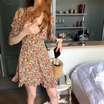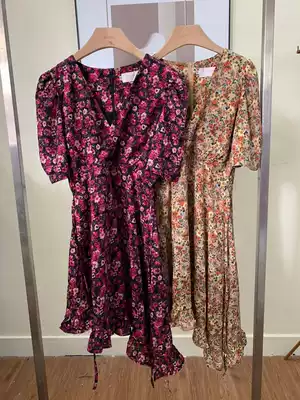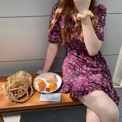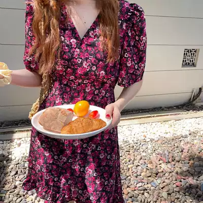Suitable for hip thigh thick dress large size women's fat mm slim vneck French retro purple floral skirt