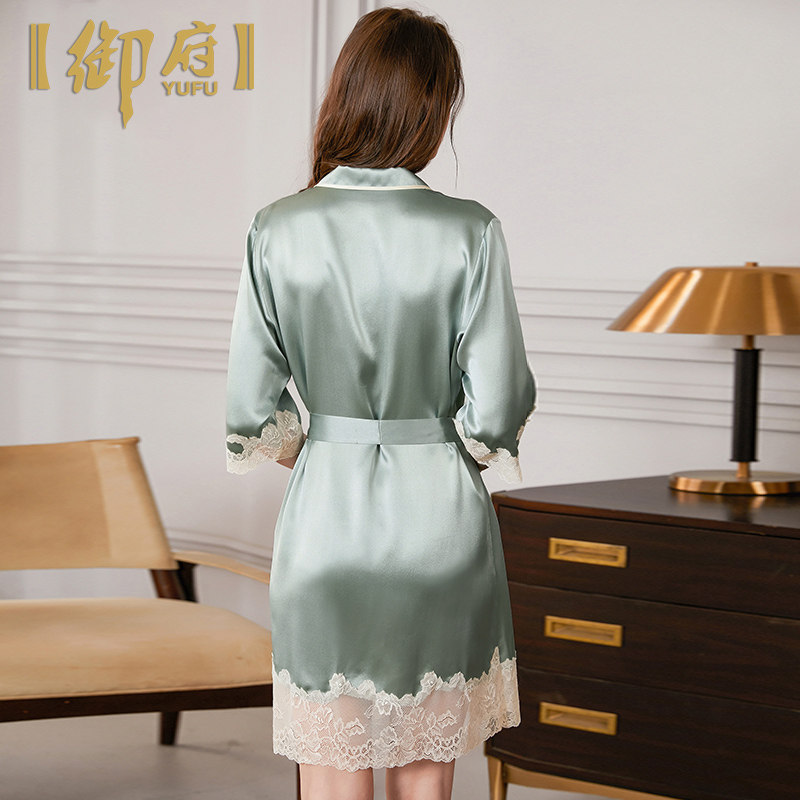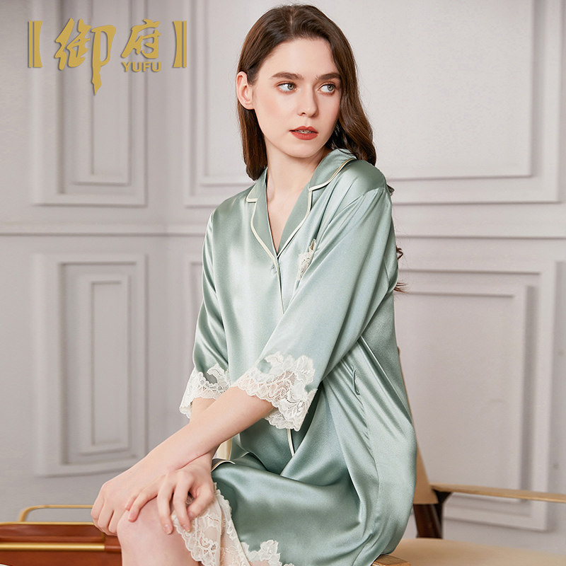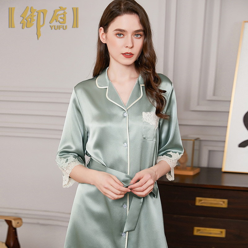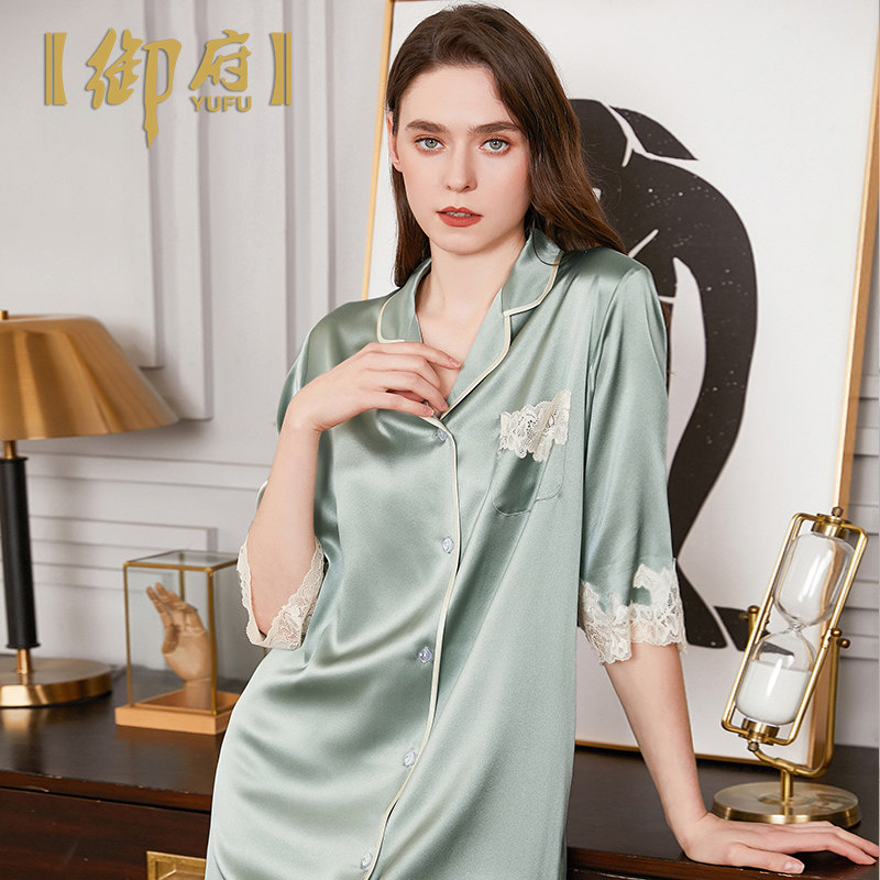 Mifu 70% sleeve shirt style true silk sleeping dress 100% mulberry silk pyjamas summer heavy-pound high-end real silk pyjamas