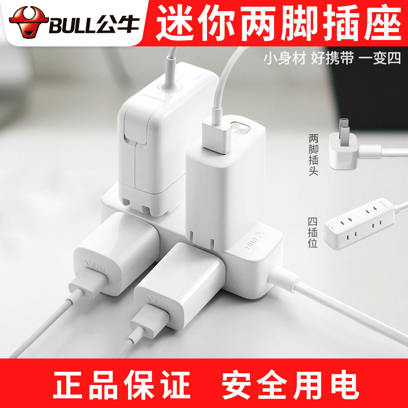 Bull mini socket plug-in row small terminal board household mobile phone charging two plugs 2 feet two-way plug extension cord