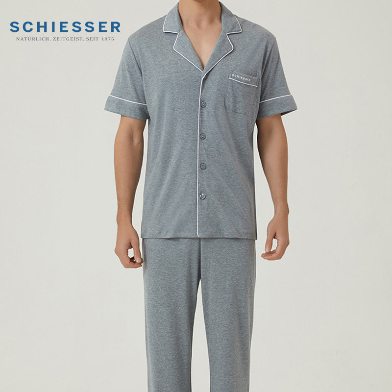 Schiesser Shuya Men's Home Casual Wear Autumn Thin Short Sleeve Pants Cotton Modal Pajama Pants Set