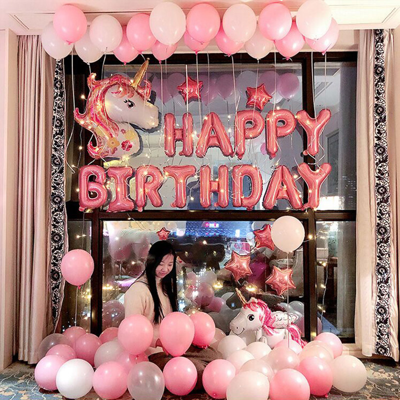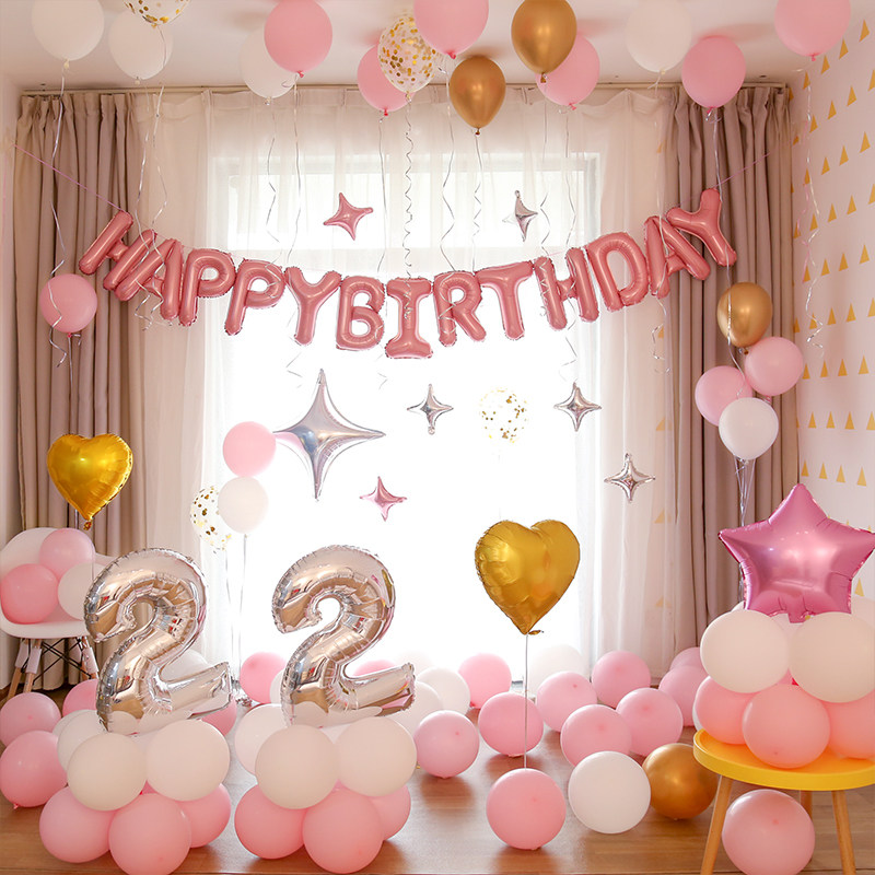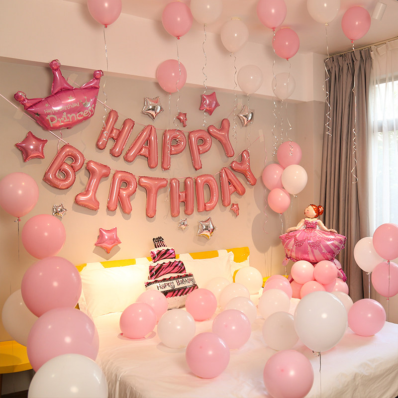 Net Red girl children's happy birthday props party background wall decorations balloon scene layout supplies