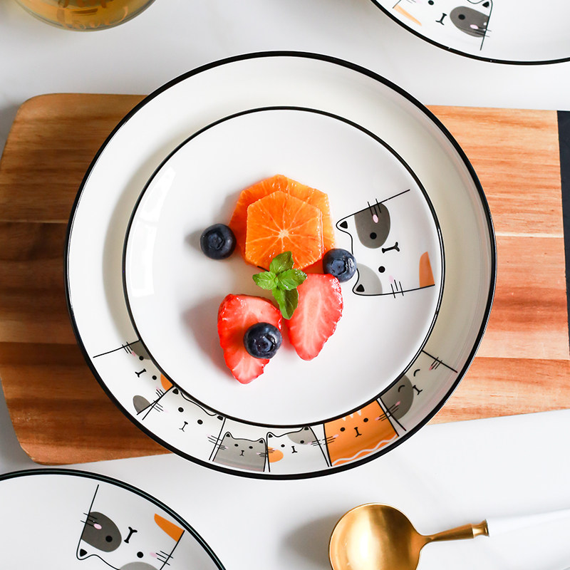 Nordic cat plate plate deep plate household ceramic creative set combination net red cute plate shallow flat plate