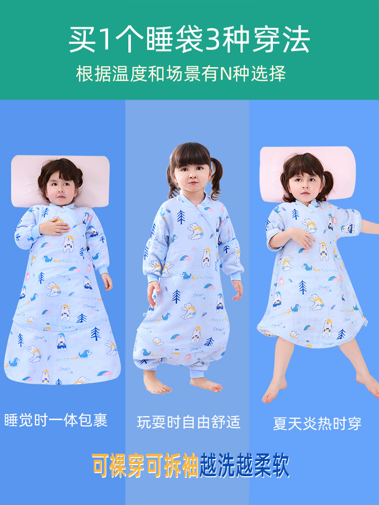 Sleeping bag baby spring and autumn thin newborn baby cotton gauze split legs summer mushroom sleeping bag children anti-kick quilt