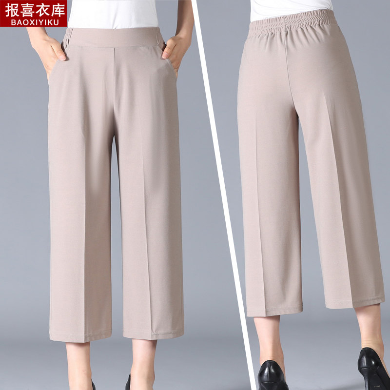Old lady summer clothes high waist grandma pants mid old lady pants mom tightness pants 70 years 80 casual pants slim fit