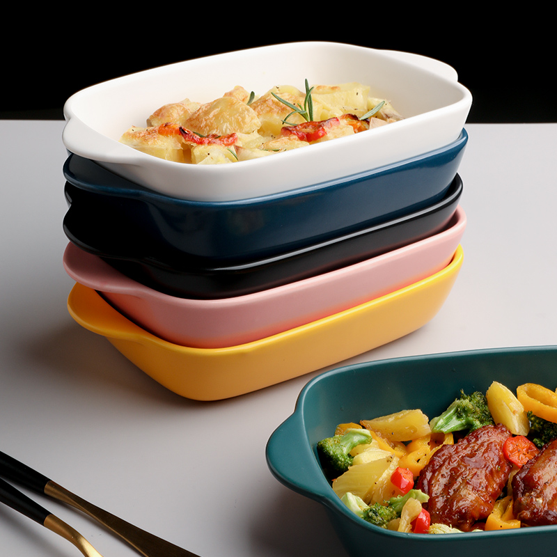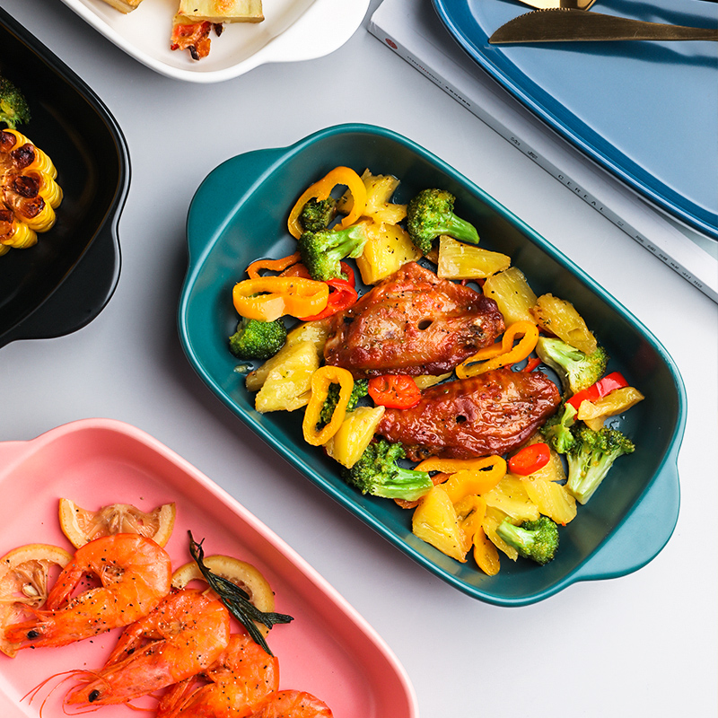 Nordic Ceramic Baking Tray Mesh Red Pan Son Creative Cutlery Cheese Baking Rice Microwave Oven Special Baking Pan Baking Rice Dish