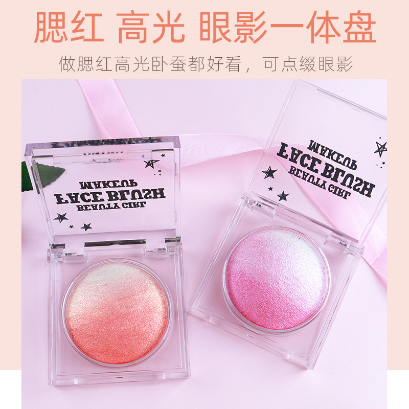Gradient blush powder fixed makeup nude makeup natural contouring shadow highlight three-in-one sun red female baked pearl flash