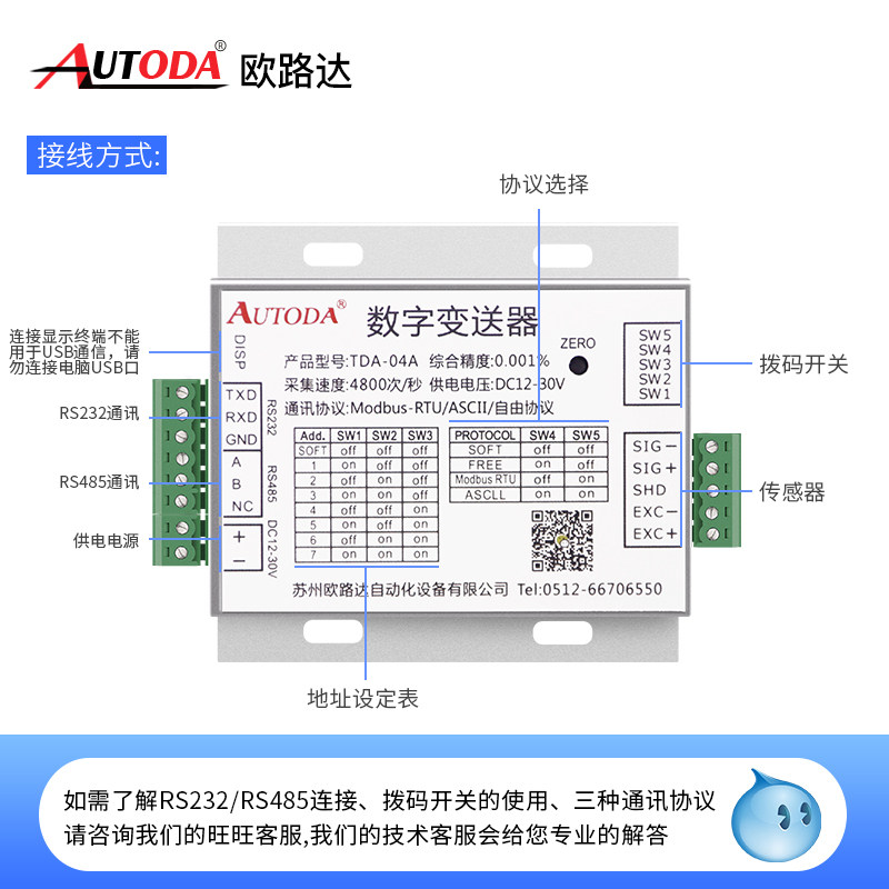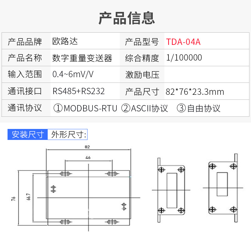 Euroluda TDA-04A digital weight transmitter RS485 analog weighing transmitter signal amplifier 232