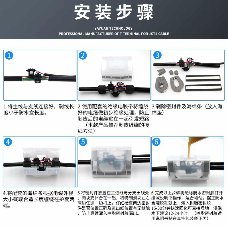IP68 outdoor street light maintenance well waterproof T integrated T terminal terminal glue sealing junction box one in two out resin