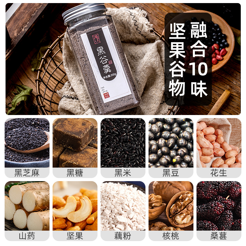 Black Sesame black sugar black rice black bean peanut yam lotus root powder cashew walnut Mulberry