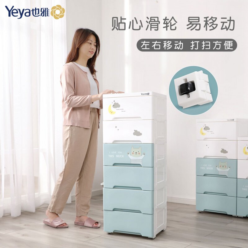 Yeya storage cabinet Plastic bed cabinet Children's toy storage box Drawer type children's multi-layer wardrobe slit cabinet narrow