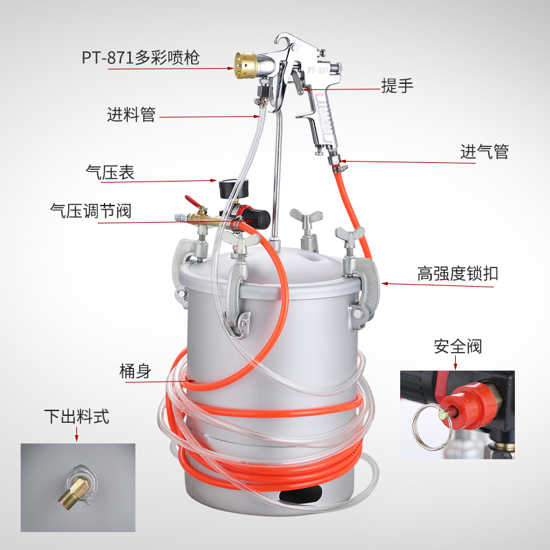 Under discharge water-in-water colorful paint spray gun imitation marble interior and exterior wall paint bag sand spray grab pneumatic spray paint tool