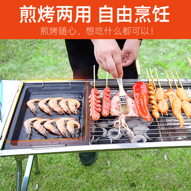 Barbecue Grill Outdoor Stainless Steel Thickened Charcoal Carbon Baking Stove Outdoor Grill Sub full set of utensils