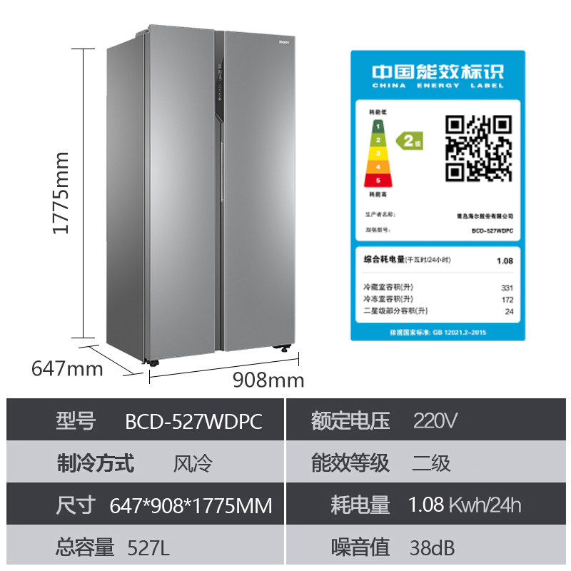 Haier 527L inverter refrigerator large capacity household double open door air cooling frost-free energy saving official flagship store