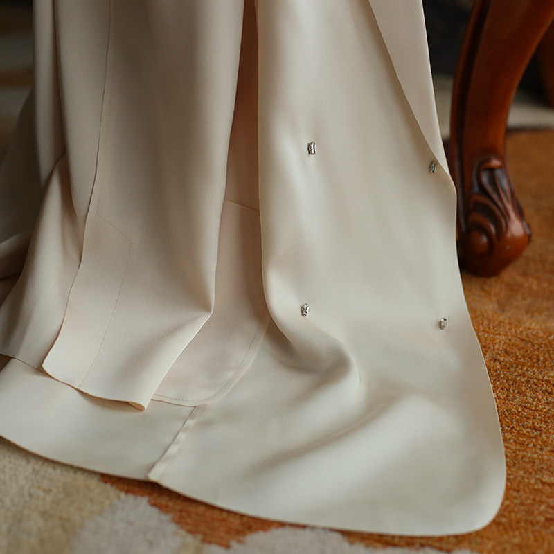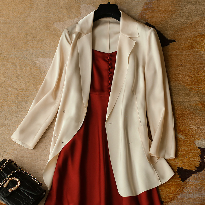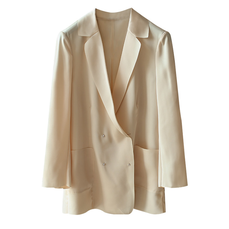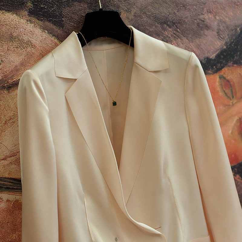 Light luxury cream suit jacket thin design sense niche 2020 spring and summer loose acetate satin small suit top#
