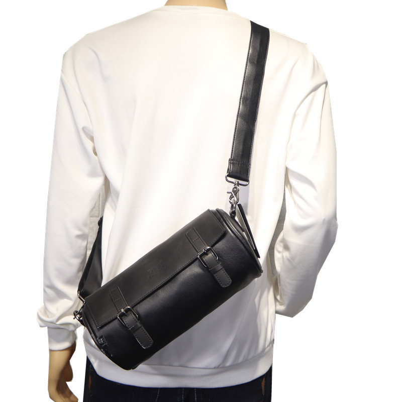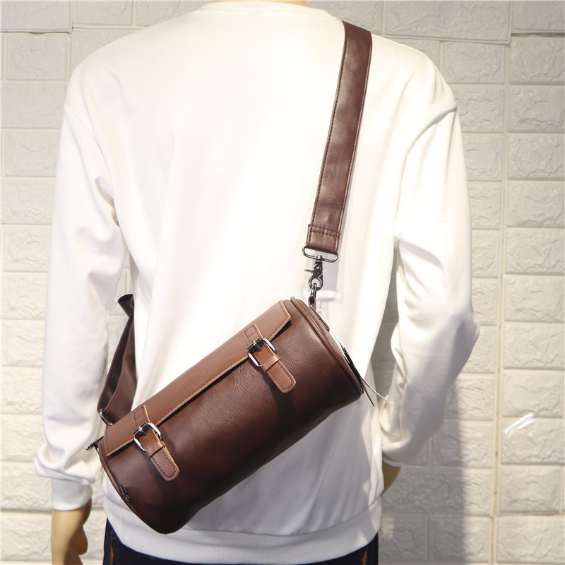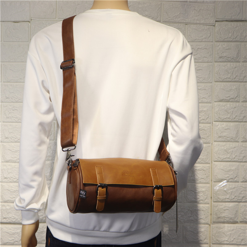 Hong Kong It Tide Cards New Men Single Shoulder Bag Japan-ROK Retro Genuine Leather Cylinder Bag Men Leisure Skew Satchel Bag