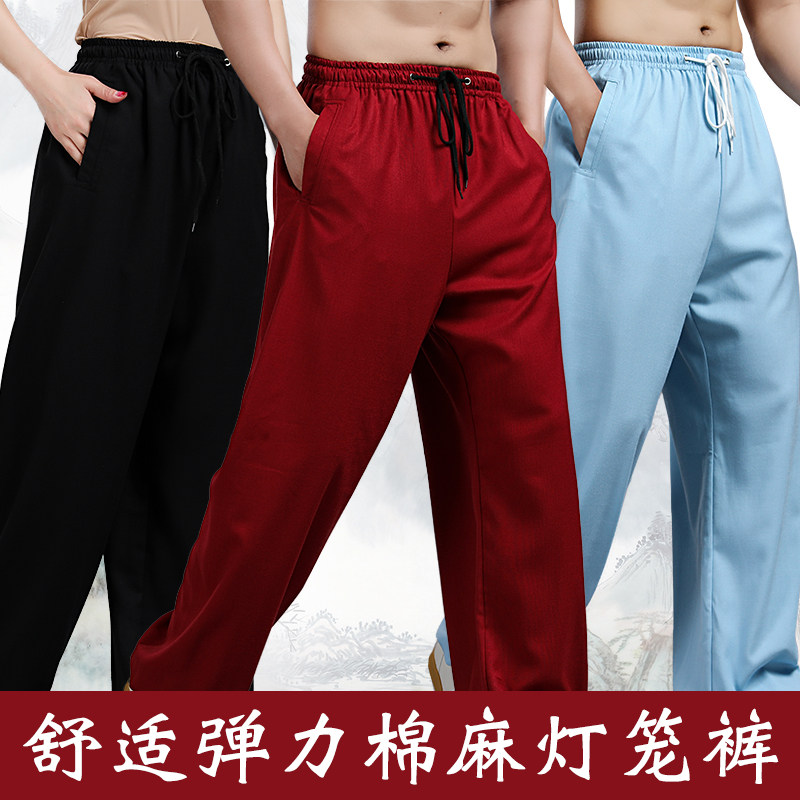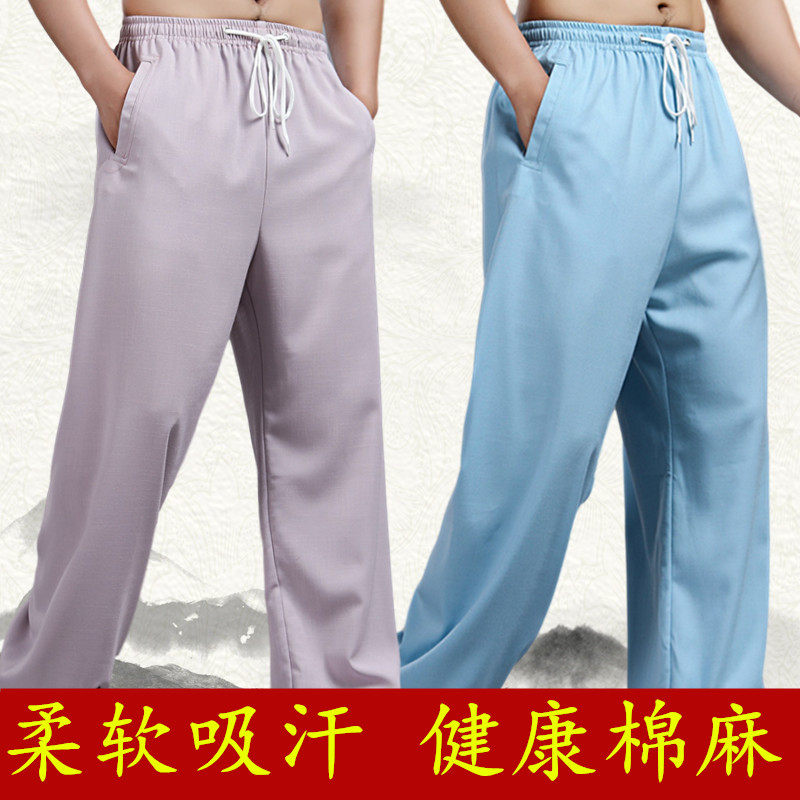 The new Tai Chi clothing women's cotton linen spring and summer Tai Chi pants men's martial arts practice pants bloomers competition performance clothing