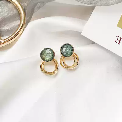 Korean opal earrings Korean version of the personality hollow spring design sense ring earrings sterling silver hypoallergenic high-end sense