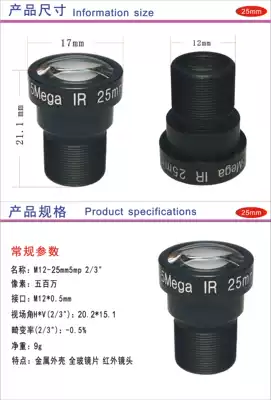 5 million HD M12 interface lens 25mm5MP 2 3quot large target vision telephoto industrial vision lens