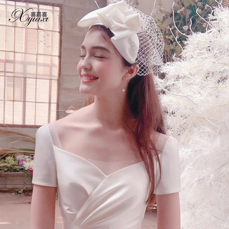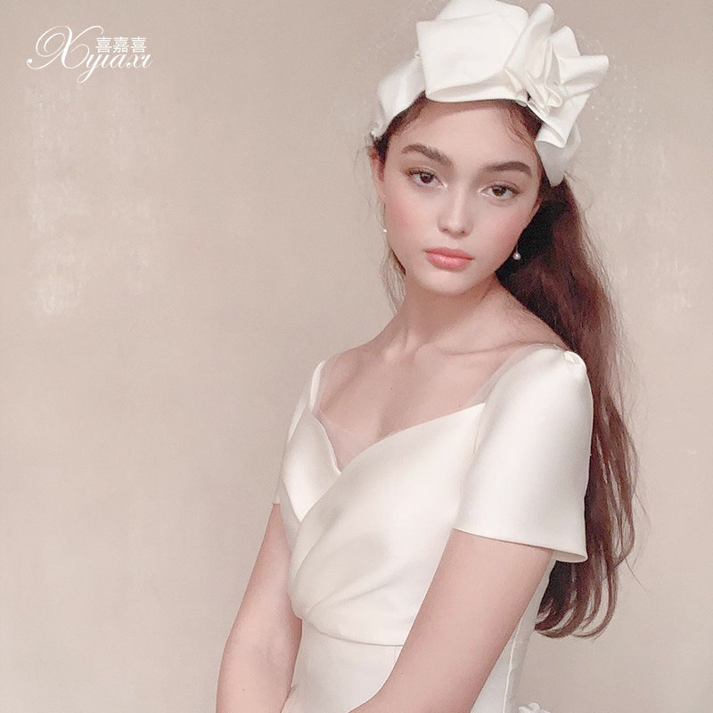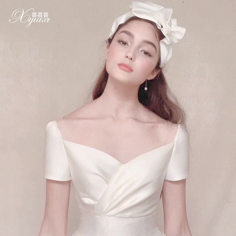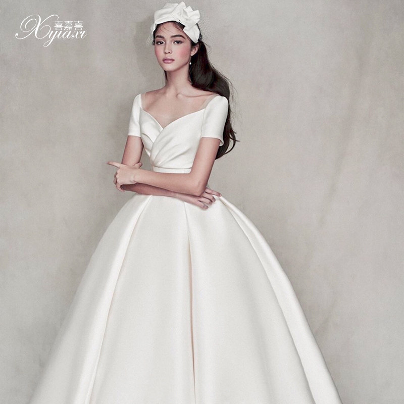 Satin French main wedding dress 2021 new temperament simple atmosphere court style small man bride 2020 light dress