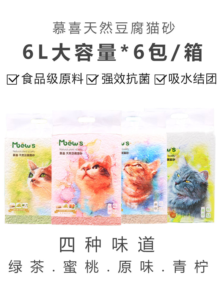 Muxi tofu cat litter 6L*6 pack whole box deodorant dustless cat sand knot 36 liters natural plant cat litter