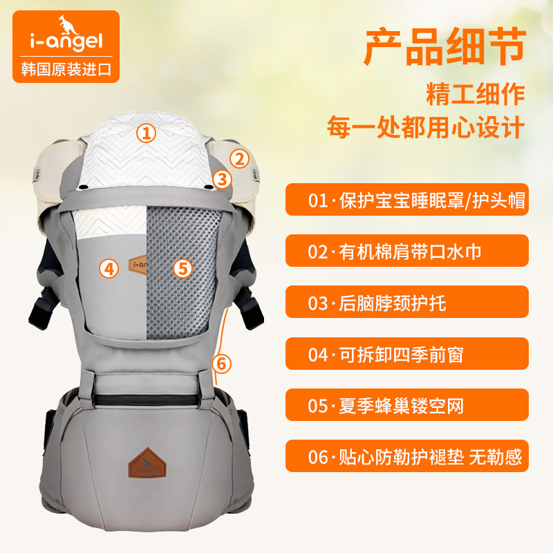 South Korea imported i-angel baby double shoulder strap waist stool multi-function four seasons breathable baby back towel single waist stool