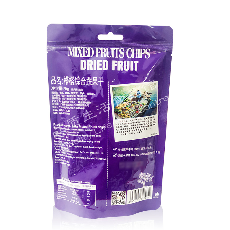Vietnam imported snacks Ta Tta mixed dried fruits and vegetables 75g Mixed dried fruits and vegetables Dried fruits and vegetables snacks Mixed dried fruits and vegetables