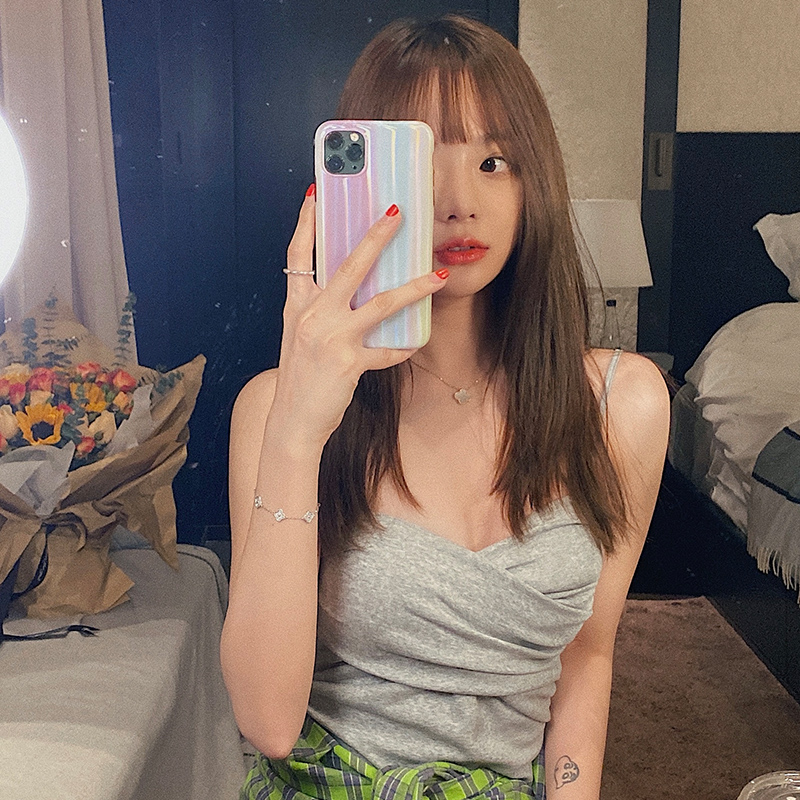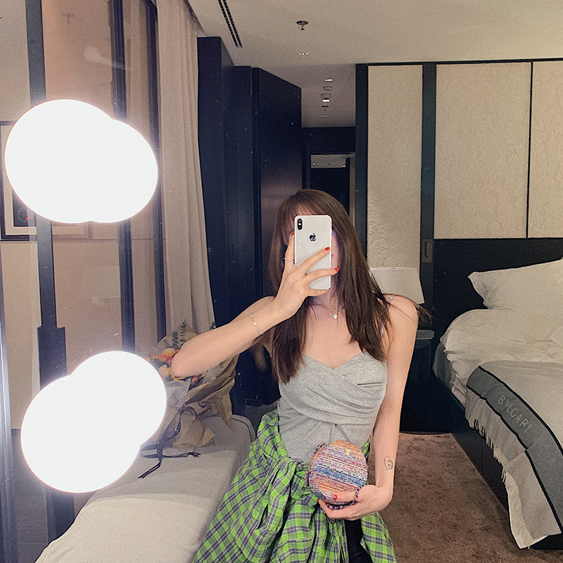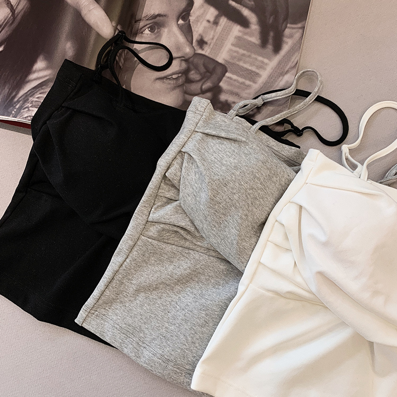 Beautiful back camisole female summer outer wear with chest pad inner bottoming one-piece bra short net red popular top trendy