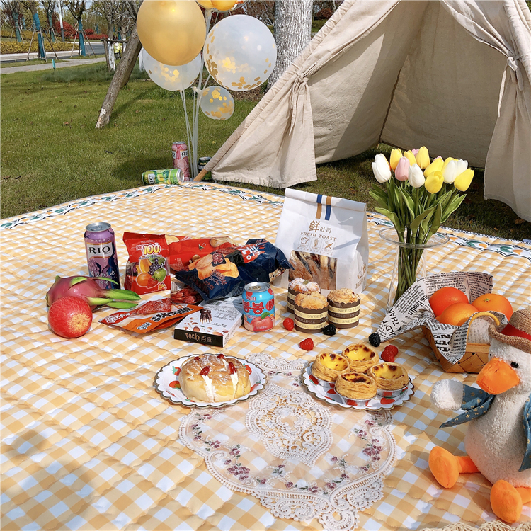 INS Nordic net red cartoon waterproof thickened increase outdoor spring outing lawn picnic mat picnic beach crawling mat