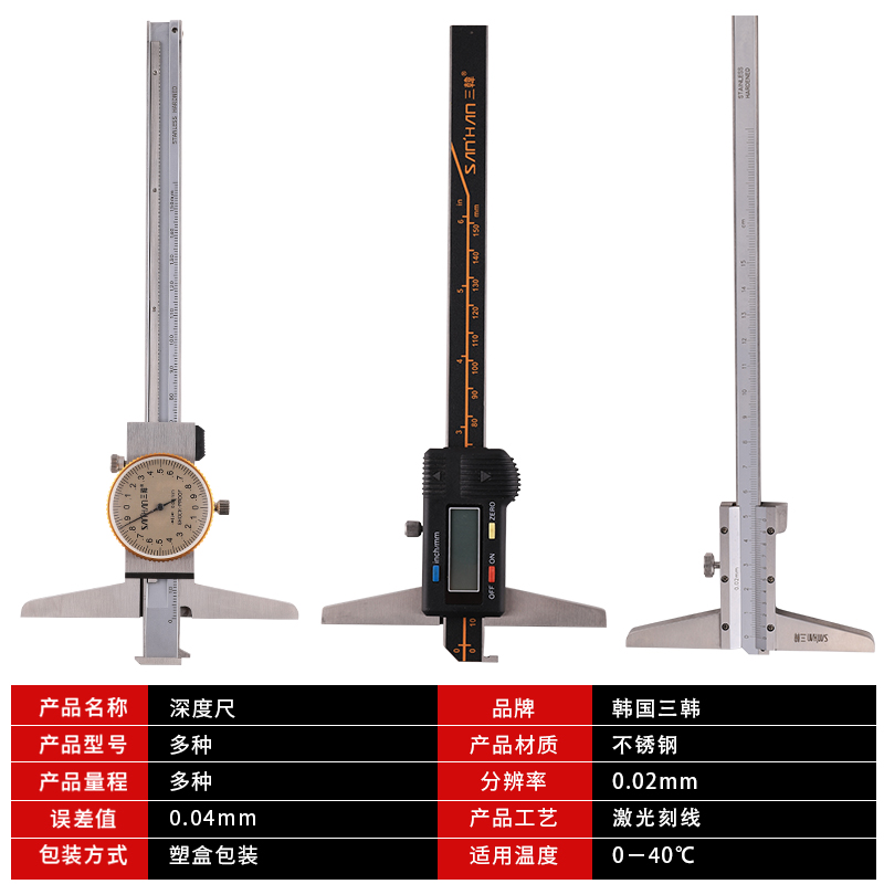 Sanhan cursor depth gauge 0-150mmSamhan cursor depth gauge 0-200mmSamhan cursor depth gauge 0-300mmSamhan single hook cursor depth gauge 0-150Samhan single hook