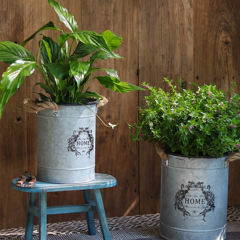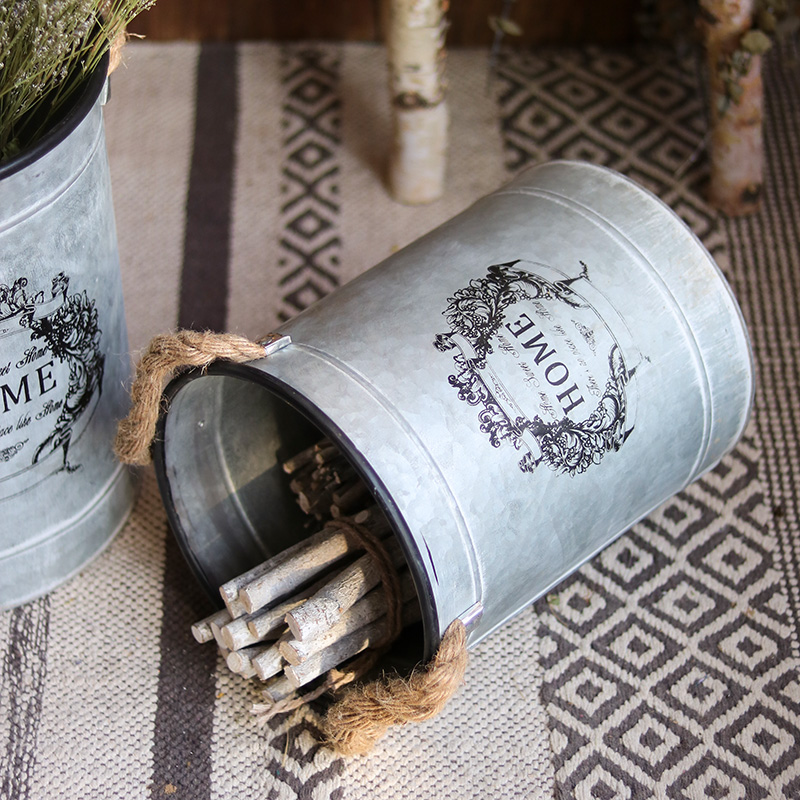 Retro tin flower Bucket Floral Flower Pot plant Basins Floor Iron Art Lifting Drum Drum Garden Flower Shop Decorated with Swaying Accessories