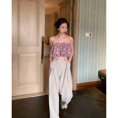 Lu Qingyi limited-time clearance hanging high-waisted retro casual pants women's loose and all-match straight suit wide-legged pants