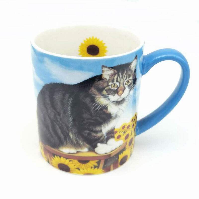 Foreign Trade Boutique LANG Mug Standard American Mark Painted Big Cat Sunflower Coffee Cup Accompanying Cup