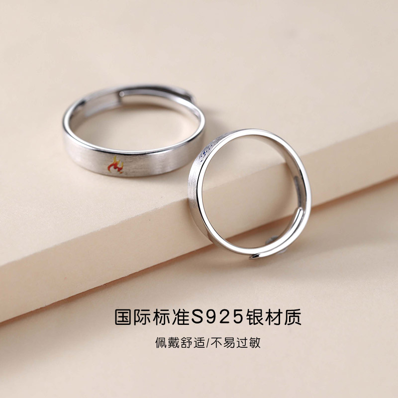 Water-fire lovers ring pure silver to ring lovers A pair of designer original small crowdsourced design minimalist custom lettering