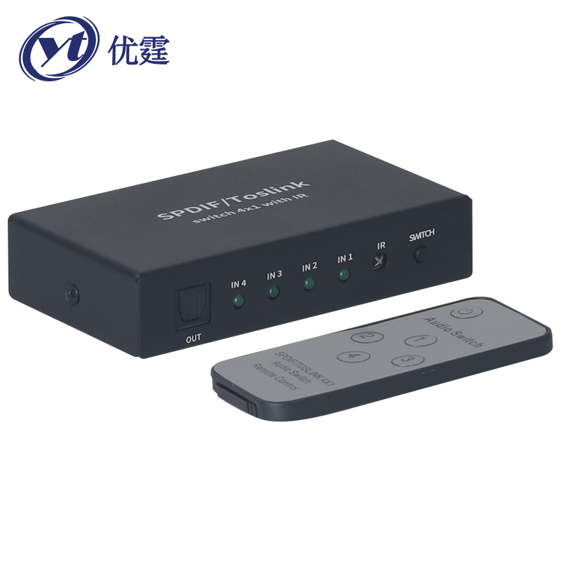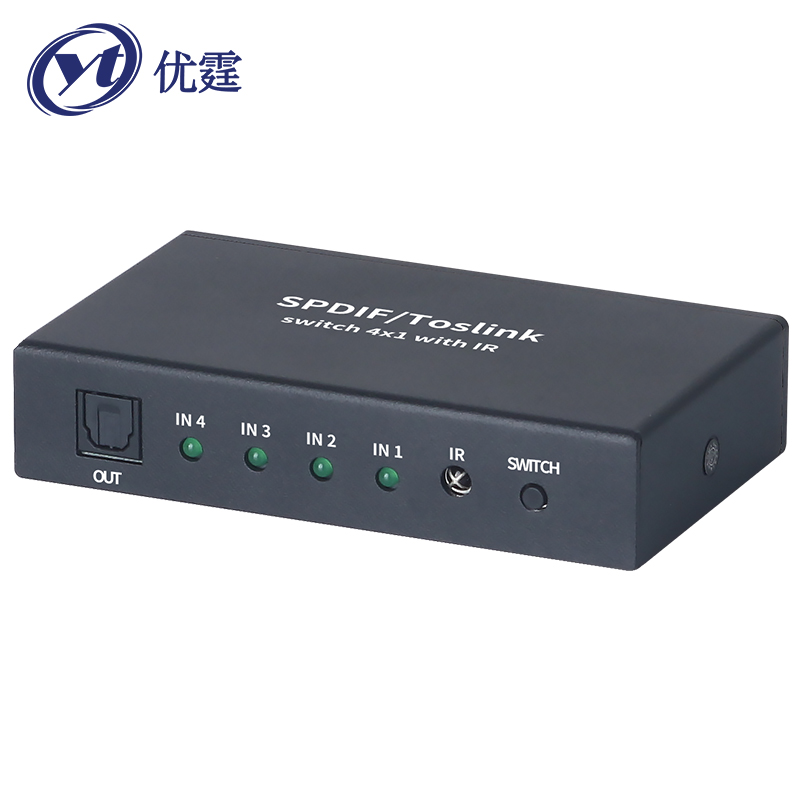 Youting Digital Fiber Optic Audio switcher Four-in-one-out 4 TV Blu-ray set-top boxes share a power amplifier