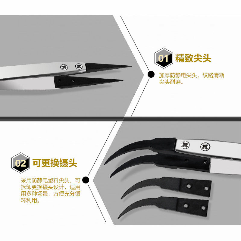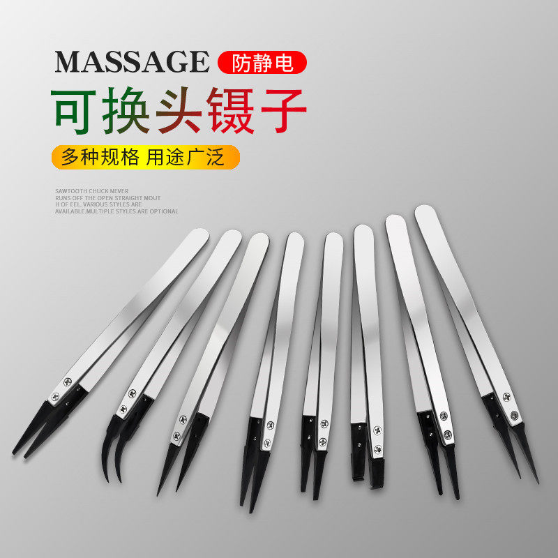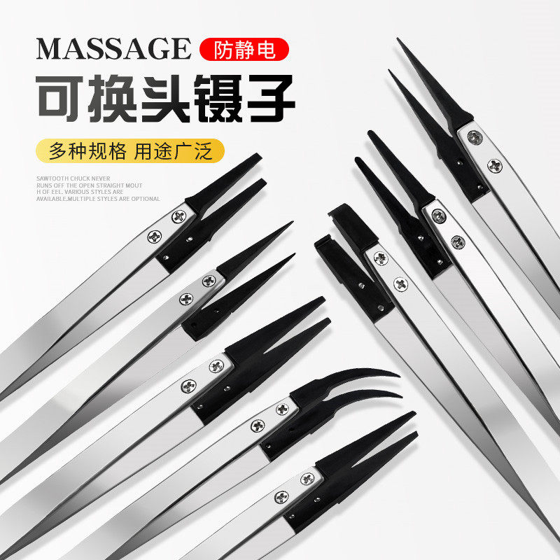 Interchangeable head anti-static plastic tweezers ESD-7A 242 249 259 plastic 6-pack stainless steel tweezers