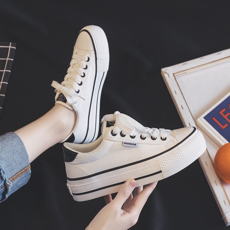 Pull back thick-soled canvas shoes women's heightened autumn breathable ulzzang low-top all-match shoes women's shoes 2022 new