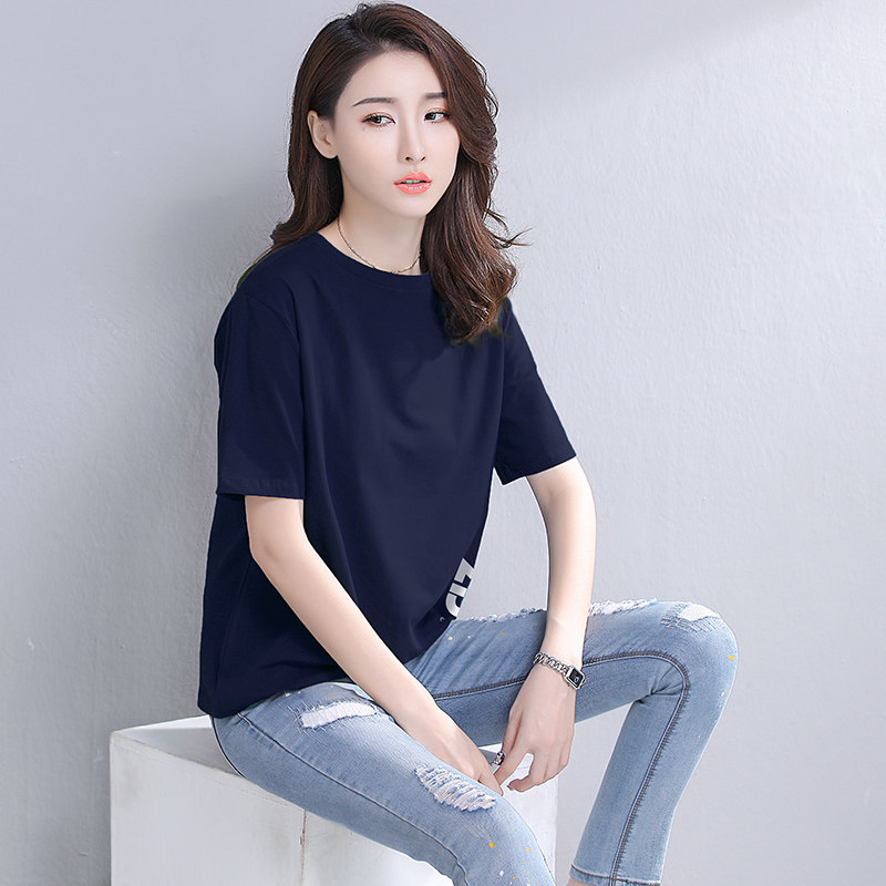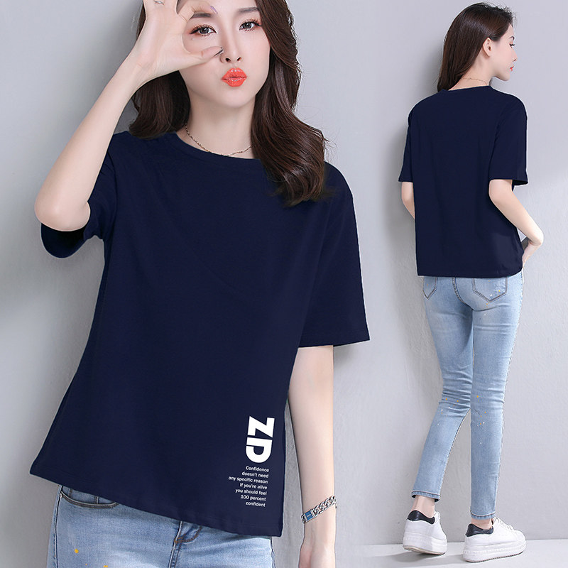 Dark blue loose short sleeve t-shirt female summer new conspicuge slimmer and undershirt large size women's clothing blouses