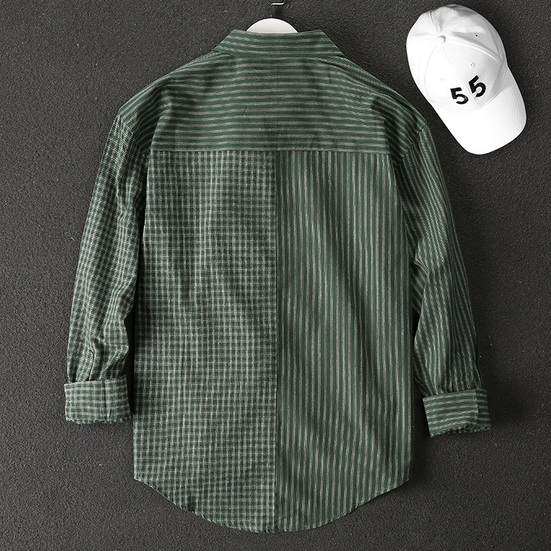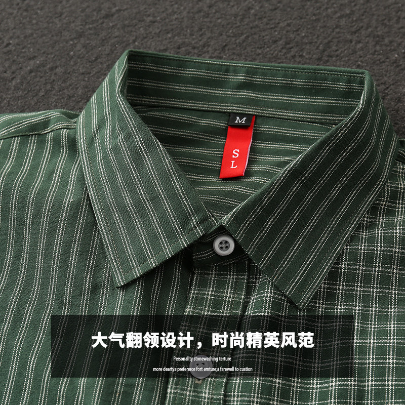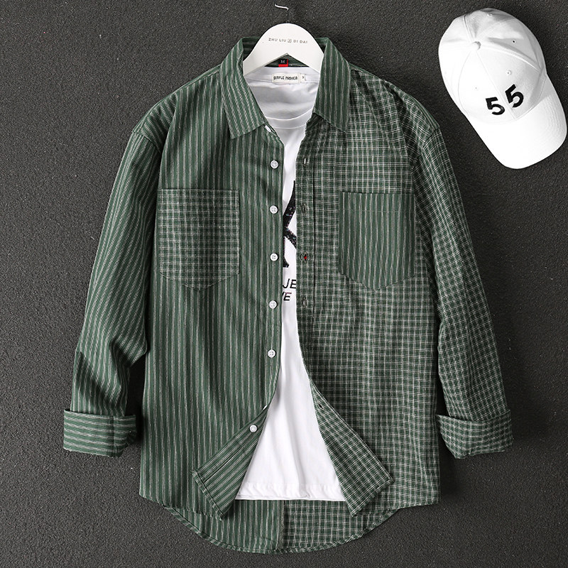 AA handsome army green 2020 Spring and Autumn new Han tide striped shirt male long sleeve sun - proof personality shirt