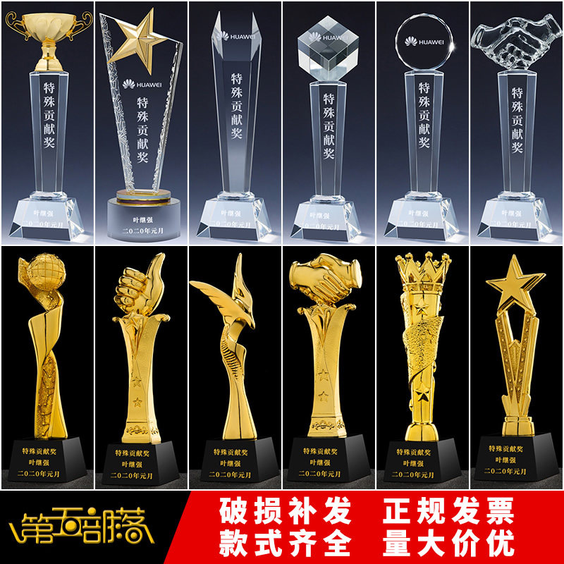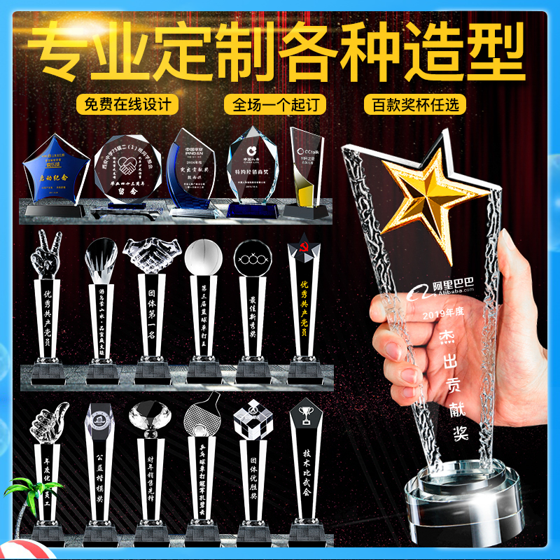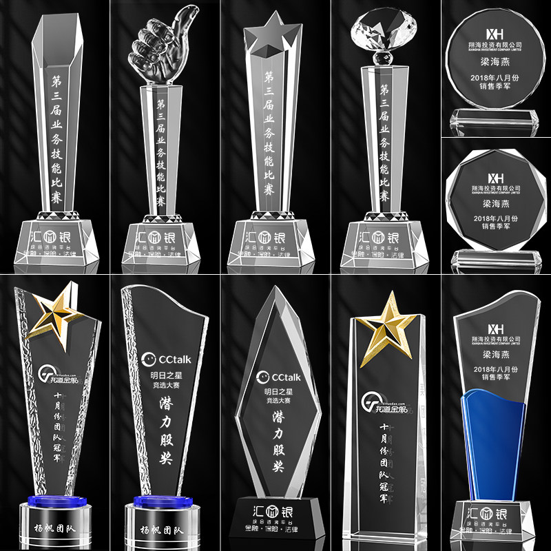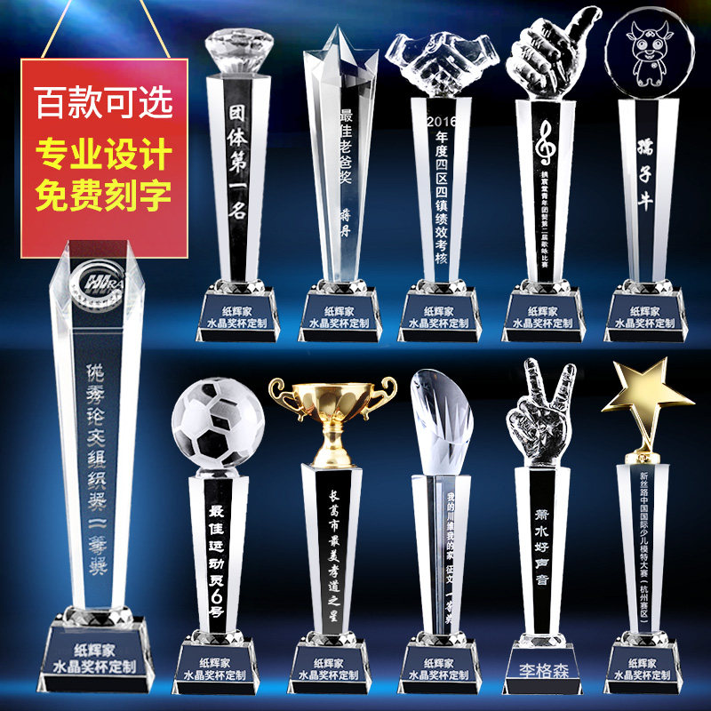 Crystal Trophies Custom Set Making Annual Conference Awards Grand Thumbs Pentagram Football Basketball Golf Excellent Employee Award