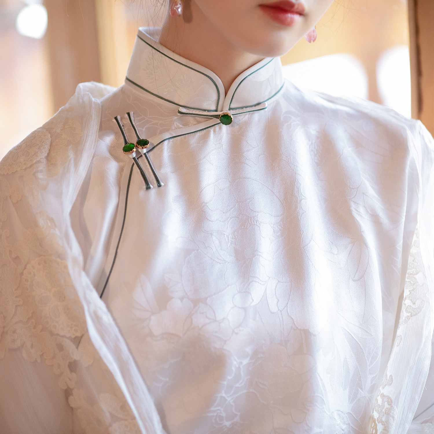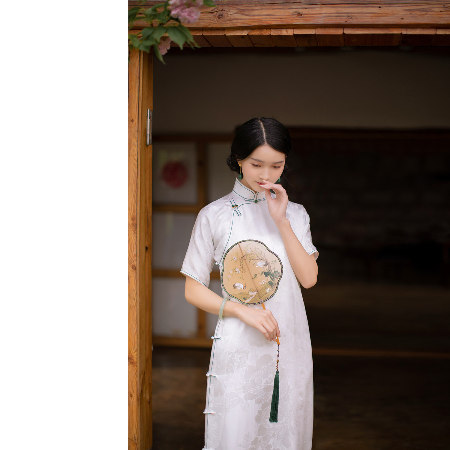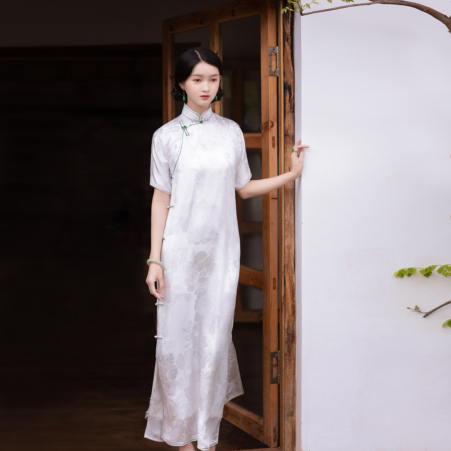 Moon Chi Hua -- a city wind flop -- spring and summer Chinese style retro Chinese style The young style jacquard satin 100 hitch a real silk qipao