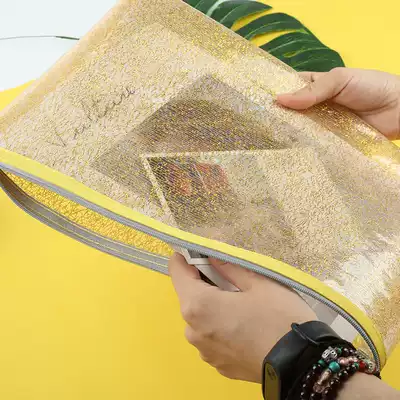 Creative Golden Screen waterproof file bag A4 information bag B5 student book bag A5 bill zipper bag beautiful